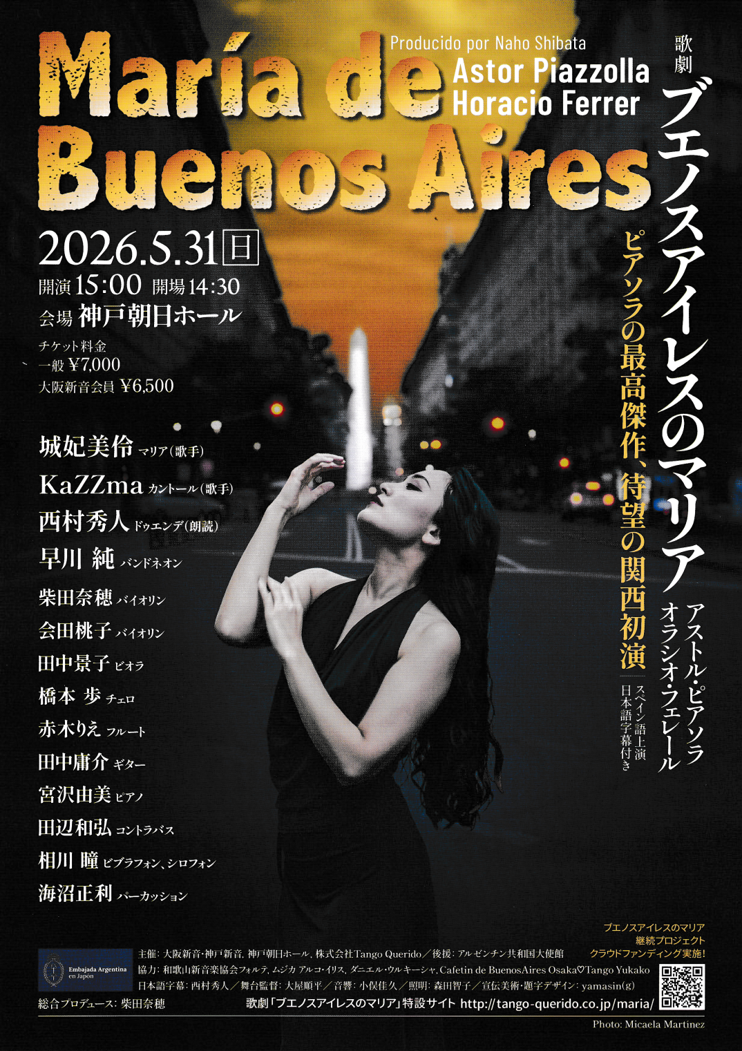 この作品中には、タンゴが生きるようにとの祈りが随所に感じられます。関西にこの作品が届くことが、この折りの一助となりますように。ピアソラの大編成の魅力をぜひ劇場で共有していただけましたら幸いです。城妃美伶 マリア・影のマリア